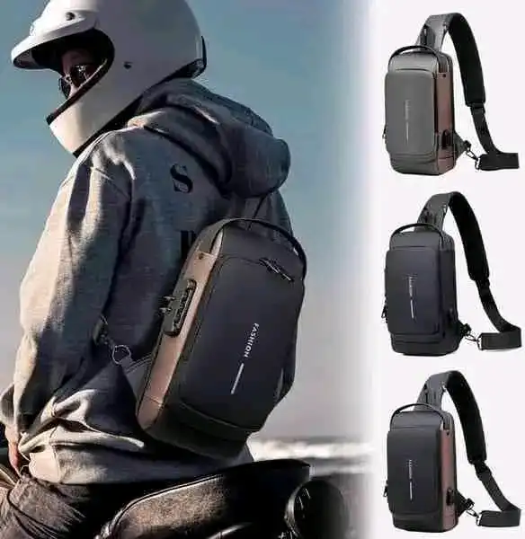 USB Fashion Charging Men Multifuntional Pu Chest Bags